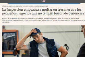 La importancia de implantar este sistema antes de dicha fecha reside en las posibles sanciones a las que puede tener que hacer frente la empresa en el caso de no tener implantado el canal de denuncias el 1 de diciembre, ya que la ley considera como infracción muy grave el incumplimiento de la obligación de disponer de un sistema interno de información en los términos exigidos en la norma y sanciona dicha infracción, si el empresario es una persona física, con multas de 30.001 hasta 300.000 euros, y si el empresario es una persona jurídica con multas entre 600.001 y 1.000.000 de euros. Todo ello, además de la posible prohibición de obtener subvenciones u otros beneficios fiscales durante un plazo máximo de cuatro años.