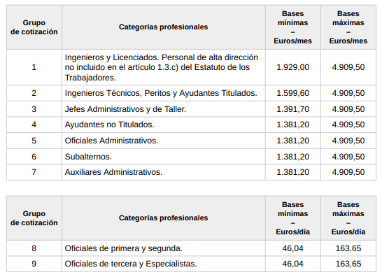 - ¿Cuáles son las bases de cotización a la Seguridad Social durante 2025?