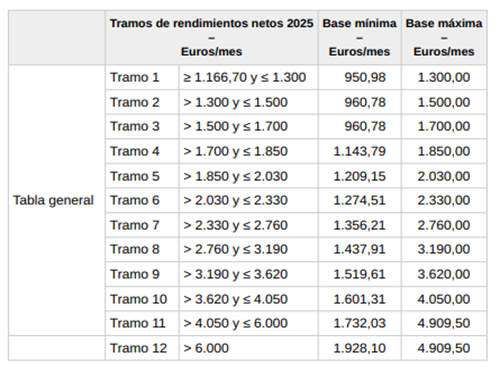 - ¿Cuáles son las bases para los autónomos durante 2025?