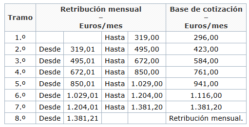 Las bases de cotización aplicables con carácter general serían: