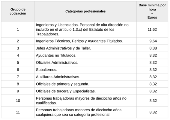 - Base mínima de cotización: 950,98 €/mensuales